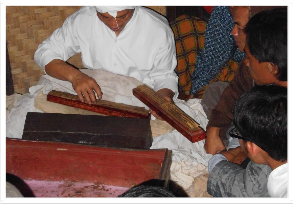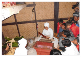 (juru kunci sedang mengeluarkan naskah dari koropak)